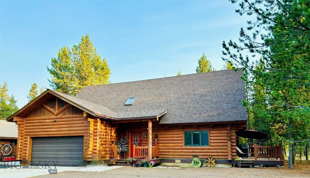 Montana Log Home in the Pines awaits you. This is a custom-built log home with tons of rustic charm throughout. This 3-bedroom, 2 full bath home has many extras that make this log home unique and ideal for anyone looking for their West Yellowstone home. An open concept main living space with just the right touches of rustic. Stunning log beams, river rock gas stove, open log stairway, upper-level loft, grand windows, granite counters and so much more bend beautifully. Living made easy with the main single level living room, dining area, kitchen, master suite, laundry room and garage access and entry. Upper-level bedrooms, loft office area, full bath, reading nook and an extra loft space that the young and young at heart will love. Ample outdoor space including a large deck with easy access from the dining room an upper-level balcony, front covered porch all are perfect for enjoying this ...