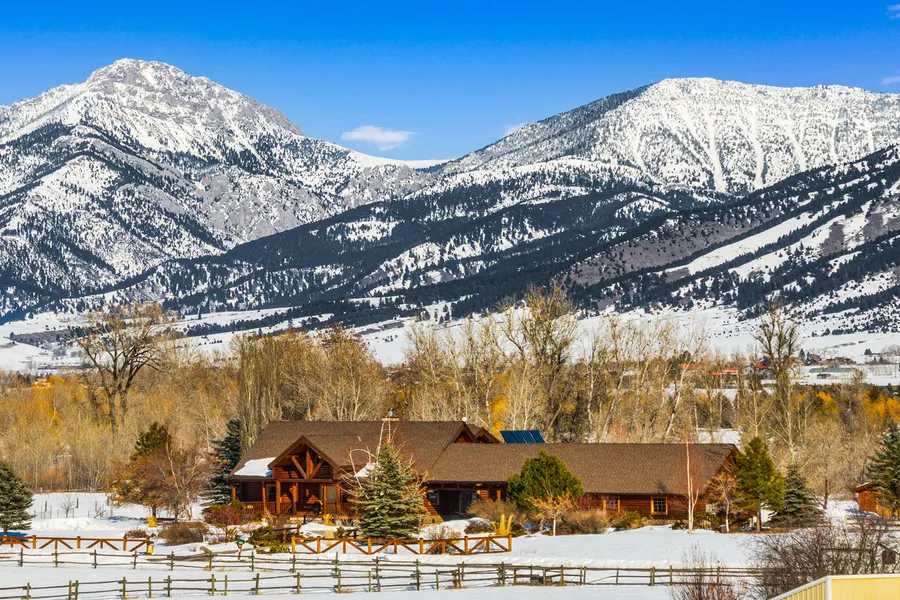 Nestled on the serene banks of the East Gallatin River, this magnificent 4,800-square-foot log home offers a rare opportunity to own a luxurious retreat just minutes from the heart of Bozeman, Montana. Designed to embrace the beauty of Montana's natural landscape, this two-story masterpiece blends rustic charm with modern convenience, making it the ideal home for those seeking an immersive outdoor lifestyle. Upon arrival, you'll be captivated by the home's stunning log construction, soaring 20-foot vaulted ceilings, and expansive floor-to-ceiling windows that flood the space with natural light and breathtaking views. The open-concept design enhances the home's warmth and spaciousness, complemented by hand-plastered American clay walls, Brazilian cherry hardwood flooring, and natural stone accents. A grand living room features a natural stone fireplace and water feature, creating the perf...