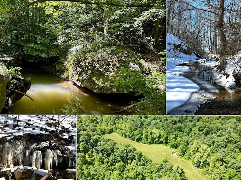 Pigeon Creek Retreat Tract 7 at The Woods on Wayne National Forest Beautiful Home/Cabin Site Or Recreation Retreat Numerous Building Sites Beautiful Year Round Rocky Creek Flows Through the Property Tremendous Rock Features Lining the Creek and in the Woods Hidden Meadow in the Back Excellent for a Build Site, Food Plot, or even a Hidden Campground New Gravel Pull Off Installed Picturesque Country Setting Varied Topography with Primarily Very Gentle Terrain New Trail System Beautiful Mature Woods with Large Open Meadow by the Road Very Easy Access to Wayne National Forest Wildlife Pics from Various Lots Excellent Deer and Turkey Hunting Elevated Hunting Blind Included New Survey Additional Tracts Available