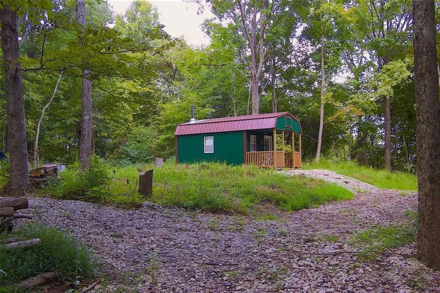 - 12x24 shed-type cabin with 6x12 sitting porch, wood burning stove and bunk beds