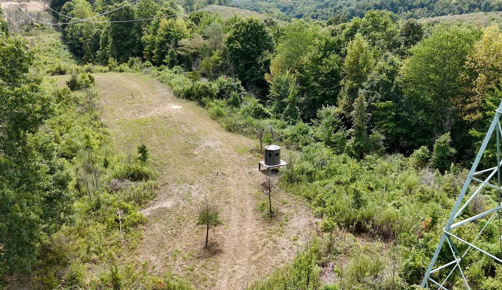 The wooded area surrounding the cabin features a well-crafted trail system that follows the natural terrain. These trails are accessible by tractors, ATVs, and UTVs, making them convenient for all your outdoor activities. The property also benefits from a high tower power line opening, providing two crucial features for any hunting property: deep cover and the opportunity to implement supplemental feed. The deep cover along half of the line, situated close to a feed source, makes this an ideal habitat for wildlife. With water, cover, and the potential for food, managing the wildlife on your land becomes a reality. And, just behind the main lodge, you'll find a mature fruit tree, adding another layer of appeal to this remarkable property.