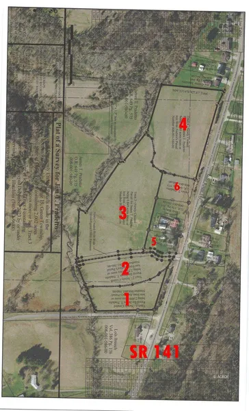 DON'T OVERLOOK THIS OPORTUNITY....4 lots with frontage and/or access to SR 141 are as follows: LOT 1 2.001 ac $39,500 LOT 2 2.553 ac $45,000 LOT 3 6.85 ac $99,750 LOT 4 5.28 $90,250 LOT 5 .783 ac $48,000 LOT 6 .890 ac $48,000 All utilities are along SR 141 including sewer, water, electric and gas. These lots have been subdivided from a larger 112 acre tract which is also for sale. Large flat areas perfect for building your dream home. Great location within 3 miles from town and close to GAHS and Green Elementary. Some restrictions will be placed on the 4 lots: residential use only, no mobile homes, doublewides or manufactured homes, so subdividing of the lots, any home built must be over 1800 sq ft of above grade living space.