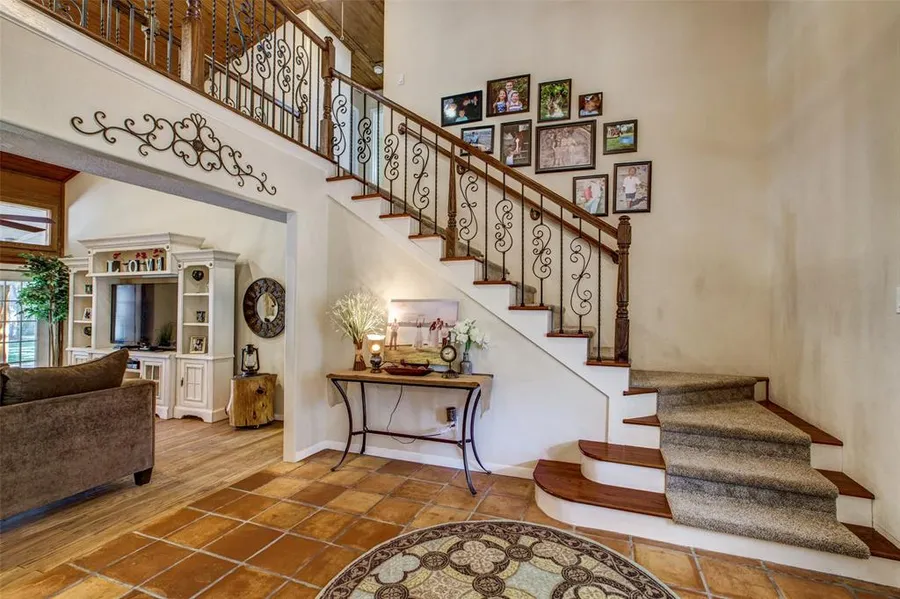 This beautiful 5 bedroom, 3.5 bath home is situated on 5.25-acre of land with beautiful trees, backyard retreat, pool with palapa and a private pond. The first floor hosts high ceilings, formal dining or a sitting room, a game room and a large family room that flows into the kitchen and breakfast area. The large kitchen provides an abundance of counter space, stainless steel appliances, a breakfast bar, and a double pantry. Tucked away in the back of the home, the master retreat has a generous amount of space, natural light and a sitting area. The master bath includes a separate shower and tub with double vanities. The open format staircase with custom scroll spindles leads upstairs to the additional bedrooms and full bath. The huge back patio and seating area overlooks a beautiful green space, pool and palapa. The feel of country living at it's best, fenced and cross fenced for your ani...