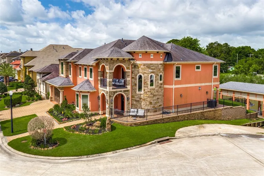Stunning Harbour Classic Mediterranean custom in which not a single want/desire was omitted! Located in the quiet & quaint gated neighborhood of Casa Marina del Sol. This property includes 950 lb capacity elevator with phone, (2) primary bedrooms, a media room, game room, (2) generators, (3) tankless water heaters, (3) dishwashers, (2) Wolf double convection ovens, Wolf gas stove/grill, water softener, remote blackout curtains in the living area and primary bedroom, plantation shutters, stone fireplace and bar area, fresh paint and oh so much more. You will feel you are living on vacation 24/7 when you experience all the outdoors has to offer. The resort style outdoors includes (3) terraces, 40 foot boat house/lift which also include (2) jet ski lifts, underwater green lights, full outdoor kitchen and bathroom and still plenty of room for a pool - a true boating enthusiast dream!