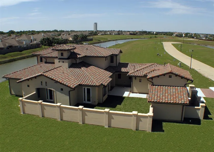 BEAUTIFUL MEDITERRANEAN INSPIRED CUSTOM HOME ON THE WATER W/ COURTYARD DESIGN & GUEST CASITA IN GATED CYPRESS BAY. DEEP WATER CANAL WITH PIER ALLOWS YOU TO DOCK A 40 BOAT & HAS DIRECT ACCESS TO CLEAR LAKE & GALVESTON BAY. INTER. FEATURES HIGH CEILINGS, OFFICE, CHEFS KITCHEN W/ THERMADOR APPL OPENING TO A HUGE DEN OVERLOOKING THE WATER, DINING W/ COURTYARD ACCESS, WATER VIEW MASTER SUITE W/ HIS/HER WALK-IN CLOSETS, GRANITE VANITIES & WHIRLPOOL TUB/WALK-IN SHOWER. 2ND LEVEL FEATURES A GAMEROOM W/ WATERVIEW BALCONY, 2 GUEST ROOMS W/ WALK-IN CLOSETS, FULL BATH & KIDS PLAY ROOM. FLEXIBLE CASITA W/ FULL BATH IS GREAT FOR HOME OFFICE OR GUEST QUARTERS. TONS OF OUTDOOR ENTERTAINING WITH THE COURTYARD PATIO & GREENSPACE, SPACIOUS COVERED STAMPED CONCRETE PATIO & LARGE YARD WILL EASILY ACCOMMODATE A POOL. EXCEPTIONAL CONSTRUCTION INCL. BELL BOTTOM PIER FOUNDATION, WINDSTORM ENGINEERED TILE ROOF & RADIANT ATTIC BARRIER. NO MUD TAX.