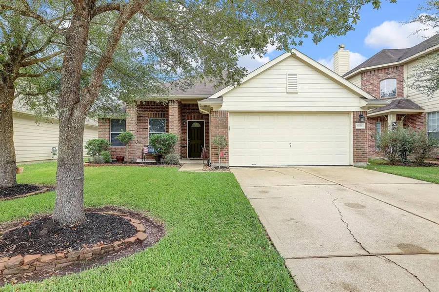 SPOTLESS ONE STORY LENNAR HOME WITH UPDATES AT EVERY TURN! BEAUTIFUL CURB APPEAL WITH A FRONT PORCH. INTERIOR FEATURES A FOYER, WOOD-LIKE TILE FLOORS THROUGHOUT, FORMAL DINING ROOM, KITCHEN WITH CRISP WHITE CABINETS, GRANITE COUNTERS & GLASS TILE BACKSPLASH OPEN TO A SPACIOUS LIVING ROOM, PRIMARY SUITE WITH FULLY UPDATED BATHROOM FEATURING HIS & HER VANITIES, AN OVERSIZED WALK-IN SHOWER AND WALK-IN CLOSET, 2 SPARE BEDROOMS AND A FULL BATHROOM WITH GRANITE COUNTER AND TUB WITH TILE SURROUND. OUTSIDE YOULL ENJOY THE EAST FACING BACKYARD PROVIDING SHADE THROUGHOUT THE DAY, COVERED PATIO, MATURE TREE AND CEDAR FENCE. ADDTL DETAILS INCLUDE PEX TUBING, RADIANT ATTIC BARRIER, FRONT DOOR IN 2021 AND WATER HEATER IN 2019. WONDERFUL NEIGHBORHOOD AMENITIES INCLUDING POOL, POCKET PARKS AND WALKING TRAILS NEARBY. QUICK ACCESS TO I-45 FOR COMMUTES.