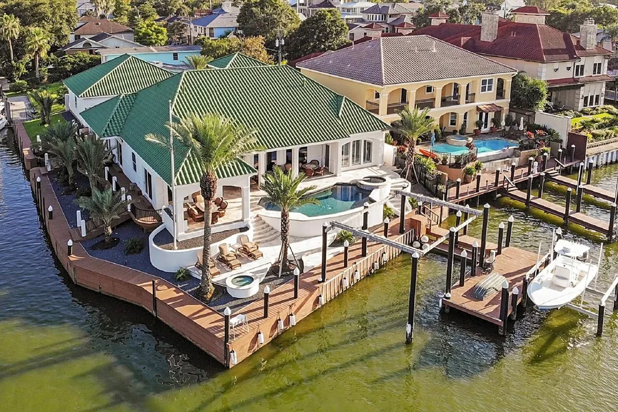 One of a kind single-story home with prime location directly on the Kemah/Seabrook channel. 280+ feet of true waterfront with docking for multiple boats, boat lift, and boathouse with floating jet ski dock. This custom home offers the best view of the Kemah fireworks, holiday boat parade, and everyday boating activity. The true outdoor paradise also includes a pool, spa, outdoor kitchen, fire pit, covered patio, and multiple outdoor decks. 3-car garage plus 3-car carport. Inside you'll enjoy wide-open living spaces and generous room. sizes. The spacious living area opens to a dream kitchen with distressed black cabinetry, Wolf appliances, and a stunning multi-barrel ceiling. Great wet bar is perfect for entertaining. All bedrooms feature en suite baths and offer direct access to waterfront decks. Fully furnished. Once in a lifetime opportunity. Be sure to watch the video and check for up...