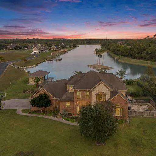 Experience true resort life in this small gated-community with 4 private ski lakes, your own private boat lift & a beautiful pool. Nestled on an acre lot, this luxury waterfront home displays true elegance & craftmanship. As you step inside, you will be drawn to the picturesque view of the well-groomed backyard, overlooking a ski lake that is visible through a wall of windows. Throughout the home you will find custom touches, including soaring ceilings, painted concrete flooring, crown molding, built-in shelving units & strategically placed floor plugs. The well designed open floor plan offers an office, formal dining room, dry bar, 2 living areas, beautiful kitchen, eating nook & sunroom. The primary bedroom, located downstairs, has an en-suite bathroom with 2 vanities, soaking tub, large frameless shower & walk-in closet. Upstairs is an additional suite, game room, bathroom & 2 more be...