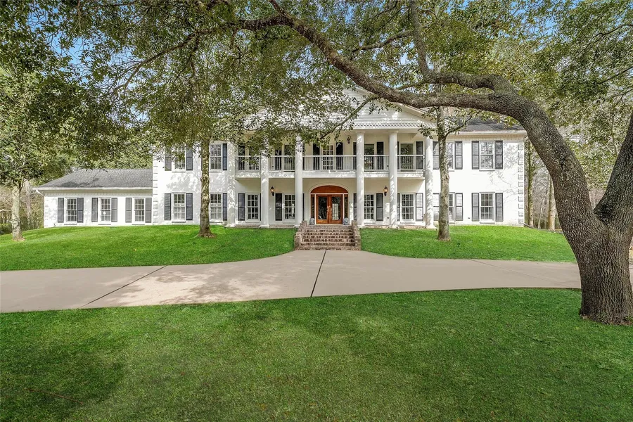 Placed in a favored Friendswood neighborhood with curving, tree-lined streets, this wonderful Colonial-style home has been re-designed for today's lifestyle. Rooms have been re-purposed for easy living and fabulous entertaining. Beautiful hardwood flooring with intricate design, tall ceilings and extensive millwork are seen at both levels. The downstairs includes open spaces with two living areas and an enormous games room. The chef's kitchen has high-end equipment with names such as Wolf, Sub-Zero and Hoshizaki. Select granites and marble cover the countertops. Beautiful interior finishes are paired with extraordinary views of the home's grounds. Tall trees and rolling terrain extend to the back yard boundary at navigable Clear Creek. Front and back terraces create wonderful spaces to enjoy the entire acreage. Come sit by the pool or take the boat down the creek to Clear Lake and Galves...