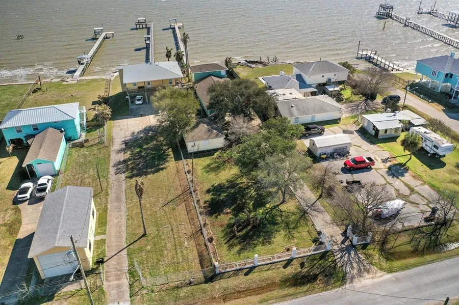 Tucked away, thru the privacy gate and down the Oak lined driveway awaits a waterfront paradise! This home is vacation everyday featuring some amazing updates: new hardie plank siding, new gutters, PEX pipe plumbing, spray foam insulation, new AC unit for upstairs suite, all new ductwork, a new balcony to overlook Galveston Bay... just to name a few. 3 primary bedrooms with 3 full bathrooms, plus an office space and a 3 car garage. This seaside home has recessed lighting, a large walk in pantry, extended laundry room and a mud room. A small bonus room off one of the bedrooms with a doggie door leading out to the fully fenced 17,119 sq ft yard! The fishing pier features a covered fishing area and uncovered dock with electric ran so no matter what time of day, you can catch a Texas Grand Slam! This home has it all, you must see it! Make an appointment and make it yours!