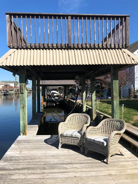 Renovated 2/3 bedroom, 2 bath Canal Front with Boathouse!Upgrades Completed in 2018 prior to Purchase in 2019: included New Roof, upgraded Electrical Box w/ Additional Breakers, New Plumbing and Recessed Lighting.Fence Added in 2019 to Secure Extended Driveway with Double Gate for Easy RV Parking!New Vinyl Bulkhead installed 2021. Downstairs is Fully Enclosed with Golf Cart/Motorcycle Garage and Screened in Back Porch. Lower Level consists of Living Room/Game Room Area with Laundry, Sleeping Quarters, Full Bath & Luxurious Freestanding Soaker Tub!Upstairs through the Glass French Doors You'll Find a Great Open Floor Plan with a Beach Vibe & Chic Kitchen that opens to Dining/Living Area with Granite Breakfast Bar.Beautiful Shaker Style Cabinets with Soft Close Drawers, Granite Countertops & Glass Backsplash.Newer Samsung Stainless Steel Appliance & LG Refrigerator topped with Luxury Finishes & Modern Ceiling Fans, Rich Laminate Flooring throughout this 2 Bedrooms & 2 Full Bath Home.