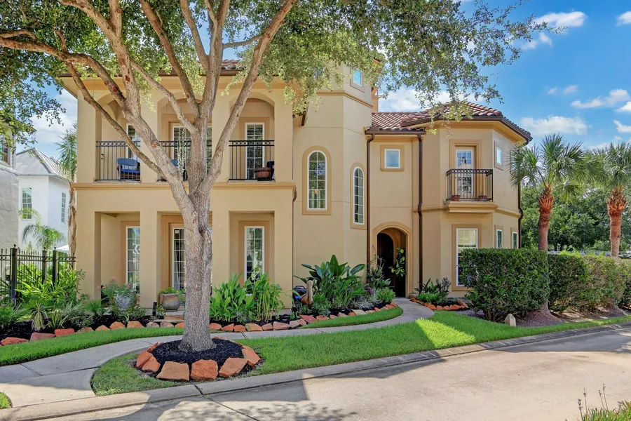 An exclusive waterfront development, Waterford Harbor offers luxury living with twenty-four hour, manned-gate security and access to the neighborhood's marina. Residents enjoy ultimate coastal living minutes from Clear Lake, Galveston Bay and the Gulf of Mexico beyond. This exceptional custom home offers open living with fabulous views of outdoor amenities. Beautiful arched entry doors provide access to the pool and sheltered patio surround. Interior spaces with arched passageways and unexpected room arrangements create interesting appeal. Extraordinary ironwork at the curving staircase and second-level balconies can be enjoyed throughout the home. Front terraces add special appeal to the facade and provide interesting additions to each of the two primary bedrooms. A study area for two which overlooks the great room has fabulous views of the pool. Subtle design features throughout the home create special interest and cause the property to become a one of a kind masterpiece.