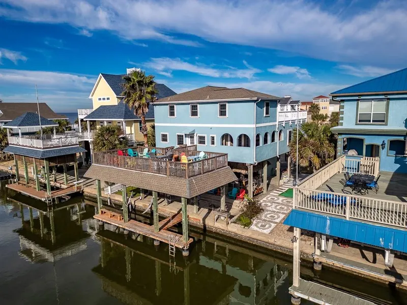 Tucked away bayside in Terramar Beach, this striking Mediterranean-style home features two boat slips with 1st row canal access to Galveston Bay and unobstructed sunset views over the water. The home\'s allure is amplified by its prime location, offering breathtaking views from a second-level patioa perfect vantage point for nature\'s daily spectacle in the sky. Outdoor living is redefined here, with a large indoor/outdoor tiki bar for entertaining, a secluded lanai, putting greens, rod holders on the boat dock, ladder access to the canal, two large decks, and an open breezeway through the boat sized garage great for storage or cookouts. This home has a proven track record as a sought-after vacation rental with ample sleeping accommodations with 5 bedrooms, a built-in bunk room, spacious living areas including, and an indoor bar area. Enjoy exclusive access to the community pool, boat ramp, and easy access to the beach. This isn\'t just a home, it\'s a gateway to true island living.