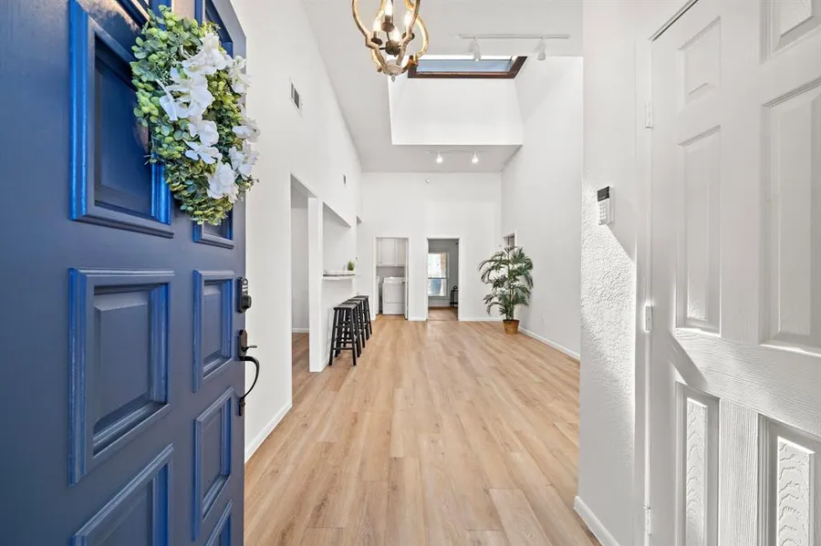 Experience the charm of Campeche Cove in this meticulously maintained 3-bed, 2-bath home with an extra bonus room, that could be office/game room/ nursey etc. Boasting a skylight that bathes the floor plan in natural light, this residence has undergone extensive renovations from interior/exterior paint, full bathroom remodels, new LED fixtures/lights/fans and the list goes on! All of this to ensure a modern comfort and style while still keeping some of the original charm. The living room features a brick covered fireplace & dry bar, seamlessly leading to the heart of the home, the kitchen with new quartz counters, subway tile backsplash, & new stainless-steel appliances & convenient breakfast bar. Two guest bedrooms & a primary bedroom with private ensuite and large walk-in closet offer comfort and privacy. The bonus room with backyard access completes this inviting residence, tucked behind the primary bedroom, providing the perfect blend of work & leisure.