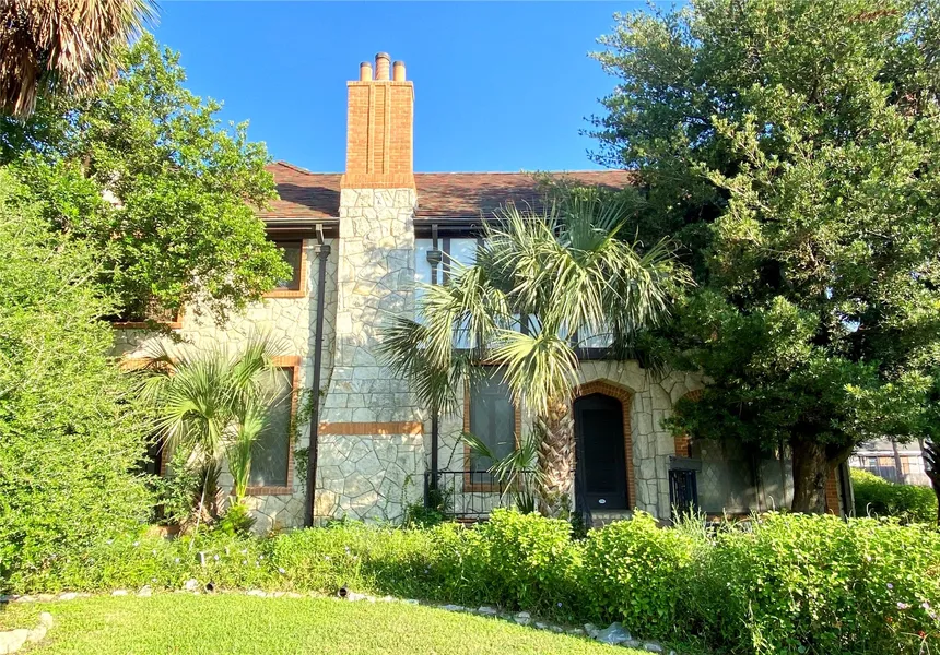 Lovely 1938 Stone Tudor Revival home sits on 3 lots! It includes 4 bedrooms 3 baths and a guest quarters on the side of the 2 car garage connected by a covered arcade. The expansive backyard is a certied wildflower snactuary has won numerous gardening awards through the years. Architectural highlights abound in the home from lovely wood floors and archways. The present owners have lived in the home since 1979 and updated the expansive primay bath and kitchen. The house did not flood in Ike, the home is equipped with a generator and there is a French Drain.