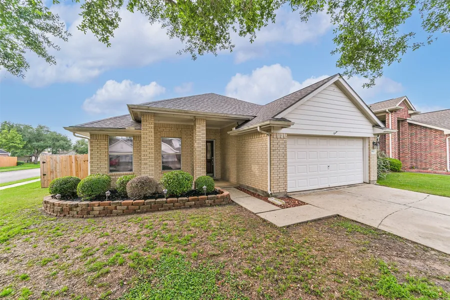 Welcome to this beautifully maintained 3-bedroom, 2-bath home with an attached 2-car garage in the highly desirable Bay Colony Pointe community! Nestled on a spacious corner lot just steps from the neighborhood pool and park, this charming home offers both comfort and convenience. Step inside to discover stunning wood-look ceramic tile flooring throughout the main living areas and an open-concept kitchen featuring 2-inch upgraded granite countertops, stacked tile backsplash, pull-out shelving, and an eat-at bar—perfect for entertaining. The large walk-in laundry room adds extra functionality, while the covered front porch and covered back patio provide great outdoor spaces for relaxing or hosting guests. Roof 2021. Don’t miss your chance to own this move-in ready gem in a great location.