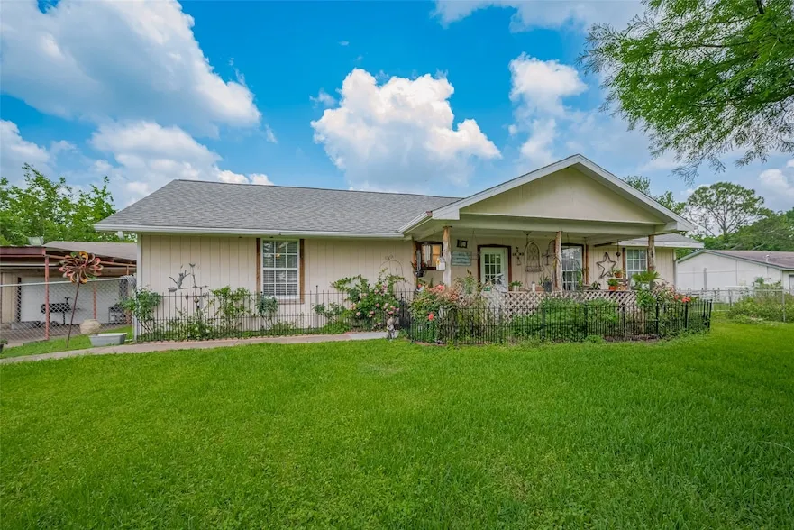 Charming 3 bedroom, 1 bathroom home on approximately 1.2 acres in one of the Houston area s fastest-growing communities Santa Fe! This well-maintained property features a 3-year-old roof on the home, 1-year-old roof on the oversized detached 2-car garage, and a water well, tank, and pump installed just 6 months ago. AC and large water heater are approximately 3 years old. The kitchen boasts a stainless steel double oven and a sink that overlooks the expansive backyard. French doors from the dining area lead to a large covered wooden back porch, perfect for relaxing or entertaining. Covered front porch offers a peaceful place to unwind. The yard is fenced in front and back and includes two mature pecan trees. With a mix of indoor comfort and outdoor space, this home offers country charm with convenient access to city amenities. Don t miss this opportunity in desirable Santa Fe schedule your tour today!