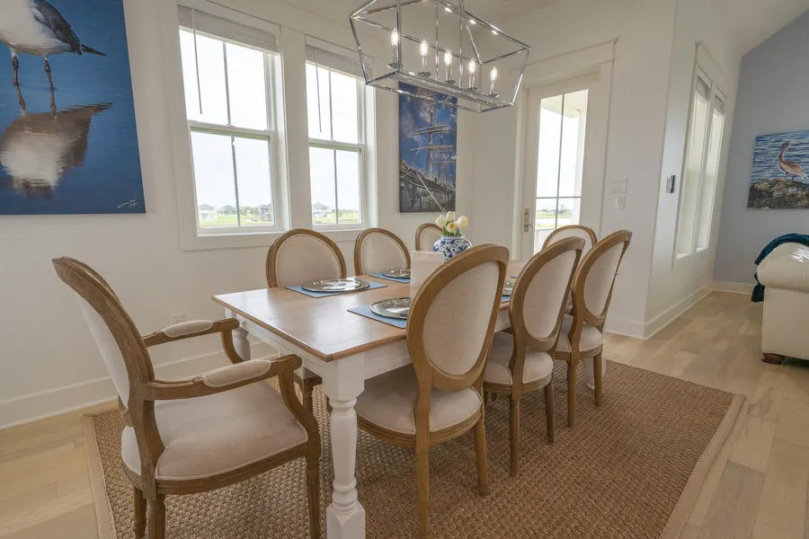Construction completed December 2023, this home sits on an open 1.76 acres at the end of a cul-de-sac and offers unobstructed breathtaking views of the West Galveston Bay sunsets. Open concept living area, kitchen with two waterfall marble islands, beverage center and Kitchenaid appliances. Marble countertops, wood and tile flooring throughout the home. The abundance of windows offer inflow of natural light to the 14' vaulted living area and enhance the open concept coastal styling and panoramic water views. The full-width rear balcony offers a covered space for dining and relaxation as well as an uncovered space for enjoyment of the sunshine. All of the original coastal art and custom built furniture convey. Neighborhood amenities include private fishing pier, tennis courts and swimming pool. Vacation rentals are permitted and home conveys furnished with golf cart for immediate enjoymen...