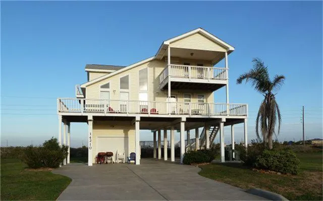 Large 5 bedroom home in exclusive Pirates Beach West. Gulf & Bay views from this light & bright home. 3 bedrooms have their own private decks. Open concept plan. Built in 2002 home features impact windows, wood floors in living areas, carpet in bedrooms. Wet bar with fridge and wine cooler. Heated San Juan fiberglass pool with wraparound deck. Large downstairs patio area. Short walk to the beach. Ask agent for rental history.