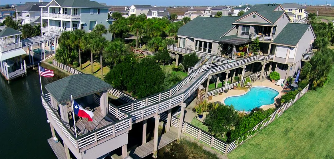 Wow! This home is all about the space. Expanded living area, 5 bedrooms, expanded dining area, multiple decks w/ view of canal & Gulf, large pool area & patio areas. Tile floors for easy maintenance. Elevator to all levels. Trex handrails, vinyl siding, vinyl deck rails, self-cleaning pool all for easy maintenance. Many built-ins can be found throughout the home. This home was remodeled in 2006 for full time living. No shortage of closets or storage. Vacant lot next door also available.