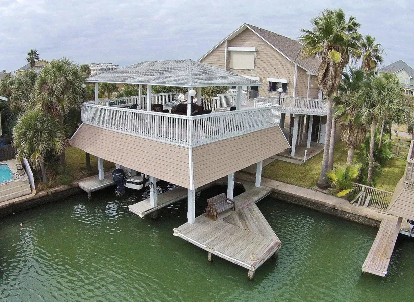 Looking for a home offering Bay Views without a bay front price tag? This is the home. Located on 2 water front lots across from Wetlands & neighbor owned vacant lot. Sunset views from this home are amazing. Recent remodel includes white oak wood floors installed by Greg Schenck, granite counter tops, kitchen cabinets, interior/exterior paint. Shutters on all windows. Double slip boathouse offers oversize deck above with views of wide canal. Many possibilities with extra lot. Furniture/boat negotiable.