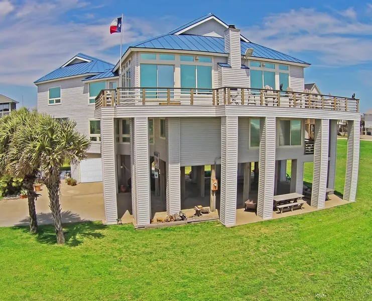Better than Beachfront. Enjoy tranquil setting of 2nd row beach home away from traffic & noise. Vacant lot in front. 2 living areas, 2 kitchens, 2 Master Bedrooms plus wraparound decks & never ending beach views. Home is oriented on 2 lots to enjoy both sunrises & sunsets. Upstairs living area features faux stone fireplace, high ceilings, hardwood floors & wrap around windows. Upstairs kitchen has stainless appliances, granite counters, custom cabinets. Elevator to all levels. Sold furnished.