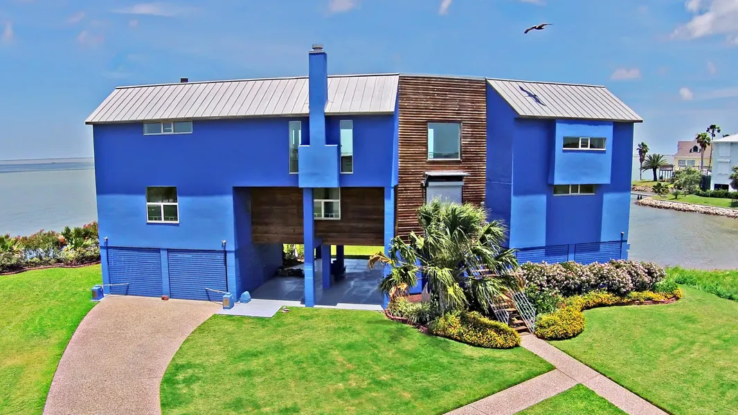 Very rare opportunity to own a home on Sportsman Road known for large lots w/bay frontage & privacy. Carlos Jimenez designed this contemporary home on over 1/2 acre w/190' of bay frontage. Home is currently undergoing remodel w/ completion set for early June. Reverse floor plan w/ open kitchen/dining/living & master on top floor to maximize BAY & Wetland views. Spacious master suite w/ double-sided fireplace. Elevator to all floors. 2 laundry rooms, abundant storage. Tropical landscaping.