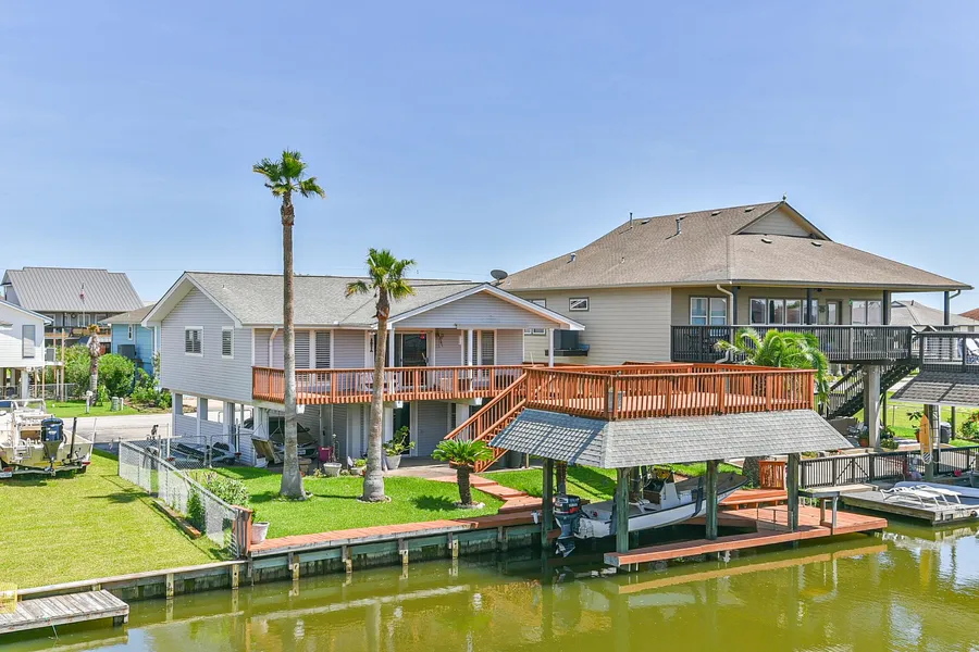 Come own your canal-front getaway at 1006 Redfish in Bayou Vista. Waterfront living, with direct access to Jones Bay and West Galveston Bay. This home has - a boathouse, boat lift, and a second-level party deck. Two bedrooms and two baths upstairs. One bedroom/office downstairs with a large 13 ft x 21 ft game room. Large primary bedroom with walk-in closet and ensuite bathroom. The 12 ft x 18 ft kitchen/dining combination opens to a large 17 ft x 18 ft living room. Laminate flooring upstairs with new carpet in bedrooms (2021). New HVAC in 2021.
