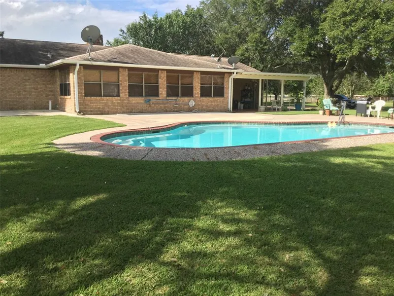 A Cowboy's Dream Home! 6.5 Acres Completely Pipe Fenced. House Features 3 Bedrooms, 2 Bath With A Extra Room Addition With A Full Bath. Backyard Features Gazebo and in Ground Pool. Four Large Metal Outbuildings. 4 Stall Horse Barn, Tack Room, Equipment Barn, Goat Barn and Chicken Coup, Covered Overhang and Workshop. The 6.5 Acres Has Mature Oak and Pecan Trees and Is Divided Into 4 Pastures.