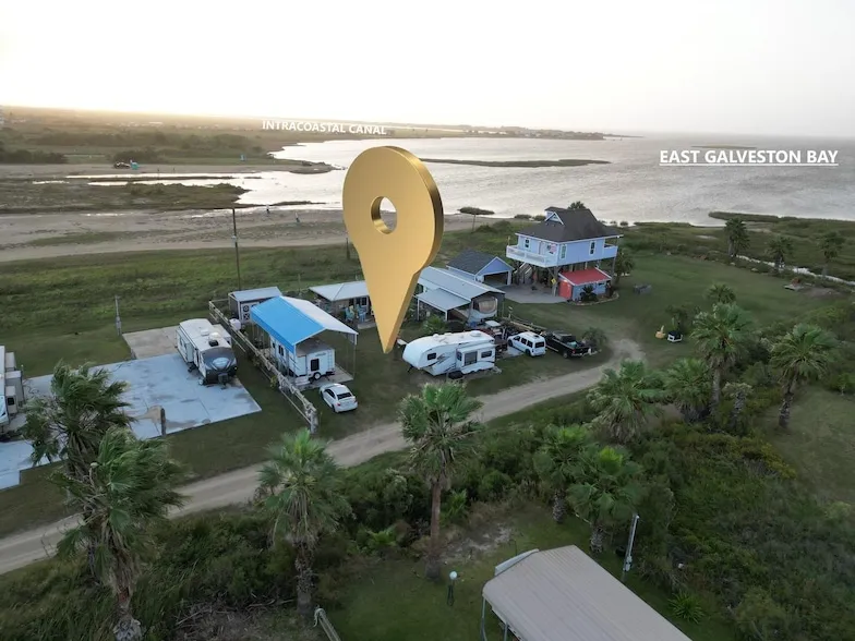 This unique bayside property in Gilchrist is a coastal treasure, situated just steps away from both the beach and the bay, right next to Rollover Pass. It offers 3 RV hookups (2 RV's are optional with sale) with 50-amp power, 2 RV Covers, sewer connections, and an enclosed screened-in outdoor kitchen. With no restrictions, the options are endless on this 10,000 SF piece of land whether you re looking to create a private retreat, a vacation rental, or a recreational space. Enjoy breathtaking sunrise views over the Gulf of Mexico and sunsets over Galveston East Bay. The upcoming new Rollover Pass Pier, right next door, adds even more charm to this prime location. The following are included on the property: a fenced in portion of the yard for pets, 10x16 shed, 18x35 cover, 15x40 cover, 10x20 with porch, 25x25 cement parking, 15x25 screened in outdoor kitchen, 16x20 deck & outdoor shower.