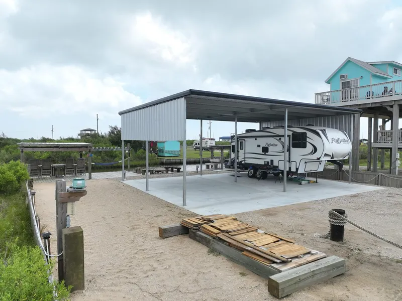 Ready to own your lot at the beach ? Just bring your RV! This lot has canal waterfront (Bay side) and minutes away to beach access. Sunset or sunrise are just beautiful ,relax sit on the custom wood chairs that stay with property or gather near the fire pit. Owners has done great upgrades to this lot! To name a few; 125 ft fenced treated wood on both side, water , electricity , private septic on property in place. ( There are 2 / 220outlet). 80 Ft of bulkhead , 1 60X15 treated wooded deck with fire-pit , outdoor sink area, outdoor shower,1portable port for jet-ski, heavy duty galvanized 40 X 30 RV cover suitable for 2 RV , 40 X 30 slab and newer septic tank (1 yr old) . This lot is close by the entrance of the subdivision HOA has private common grounds , private keyed beach access and 2 private boat ramps. Call now to get schedule a private tour!