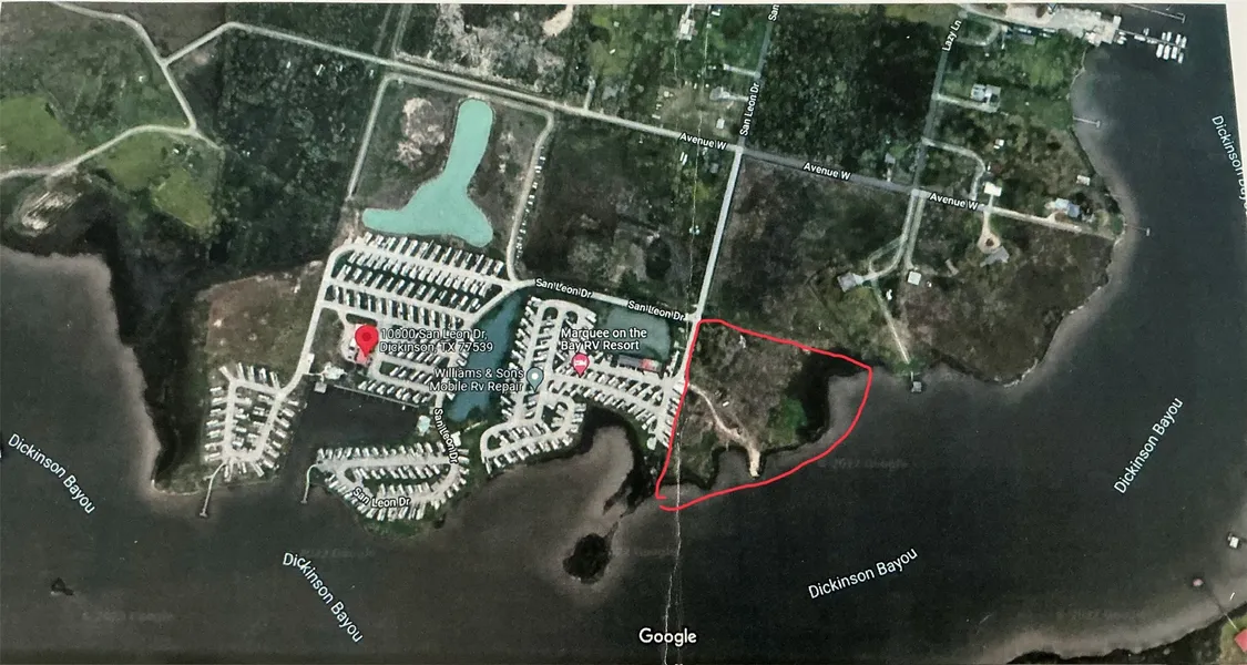 Beautiful Waterfront property with spectacular view. Approximately 6.5 acres with approximately 1105 feet of frontage on Dickinson Bayou, close to Bay. Property is cleared. Great for Commercial Development or Single Family home. Contact Janet Case for survey and aerial view. Includes both Lots, 4 and 4A, Galveston Cad.