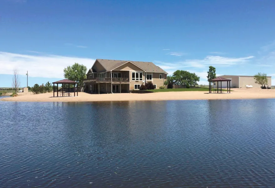 This outstanding recreation property is located on the north bank of the North Platte River, at Oshkosh in the Nebraska panhandle. In the Central flyway, this paradise is home to resident waterfowl, deer & turkey and to large migrations of geese, ducks and cranes. Beautiful 2006 home, on private lake, includes 2,237 sq. ft. on the main level, with 1,874 in the walk-out basement at lake level. Every window in the house views the lake. B&C brand 40x60 steel frame, steel clad building, fully insulated and heated. Concrete floor, wide automatic overhead door and ready for your equipment. 2 guest cabins (older houses) at north boundary, fully furnished and include barn corral system, open front shed, small grain bin, cone bottom bin and nice Quonset with concrete floor.