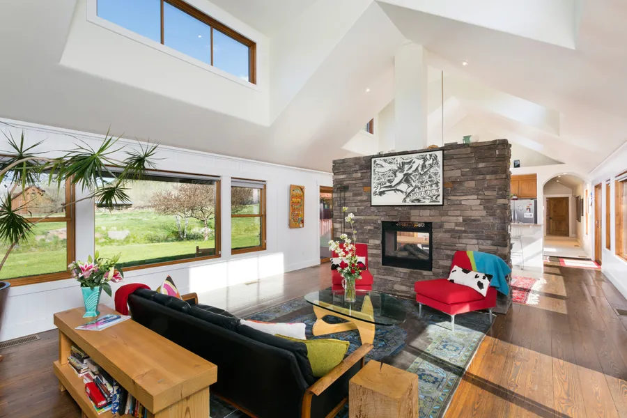 Put out the welcome mat! Inviting and comfortable one-level living. Ranch-style on the exterior; contemporary on the interior. High ceilings and lots of windows in main living area, which opens to the view to the west and the outside deck to the east. Two-sided fireplace in the living and dining areas. Open kitchen is handy for outdoor living. Vegetable garden, too. Family room is situated perfectly between all the bedrooms. Recent up-grades in the bathrooms. Ancient peach tree is a landmark in front yard. Proximate to Whole Foods/Willits, Basalt and Carbondale.