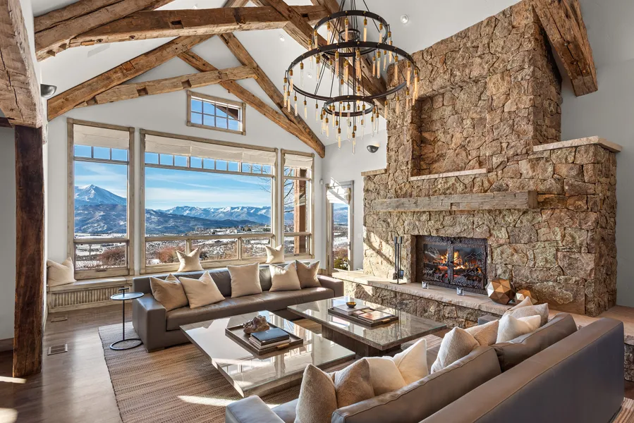Spring Park Meadows Ranch is truly a masterpiece unto itself and one of Missouri Heights' most illustrious estates. This quintessential Colorado Rockies home is positioned high on the hill side of the private and gated community of Spring Park Meadows and overlooks 35 sprawling acres backdropped with dramatic, panoramic views of Mt. Sopris and the Elk Mountain range. The 4-bedroom, 4.5 bath home features an incredibly thoughtful and open floor plan that lives mostly on one-level, taking advantage of access to the outside and views from nearly every room in the house. Those views are framed by high, vaulted ceilings and large, abundant windows lending way to a light and bright feel matched only by its exquisite finishes. Recently renovated, the home features walnut flooring and travertin