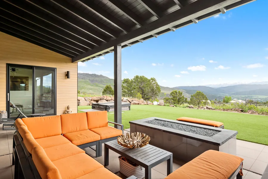 This gorgeous newly built mountain contemporary home has everything you could ask for: a main floor primary suite, stunning views of Mt. Sopris and plenty of space for guest entertainment and storage. As you step through the front door, the open concept kitchen, dining room and living room all look out from floor to ceiling sliding glass doors to the beautiful views of the Roaring Fork Valley. The covered back patio includes a built-in grill and small fridge. The turf covered lawn is easy to maintain and a great area for play. The west side of the home includes a sand area to play beach volleyball. The home has two additional guest rooms and a bonus room which can be enjoyed as a den or media/play area. This house is perfectly placed within Missouri Heights, having the benefit of the views yet still close enough to enjoy all the dining and shopping within Willits, Basalt and Carbondale.