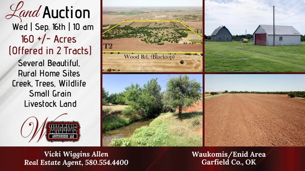 160 +/- Acres (Offering Two Tracts) | Sev. Beautiful, Rural Home Sites | Creek, Trees, Wildlife | Sm. Grain/Livestock Land | Waukomis/Enid Area, Garfield Co., OK