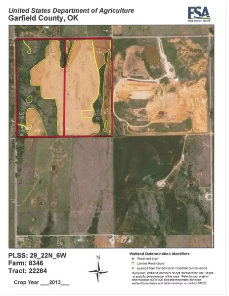 160 +/- Acres (Offered in Two Tracts) * Highly Productive Sm. Grain/Wildlife/Livestock Farm * Corner of Southgate Rd. & Leona Mitchell Ave., Enid, Garfield Co., OK