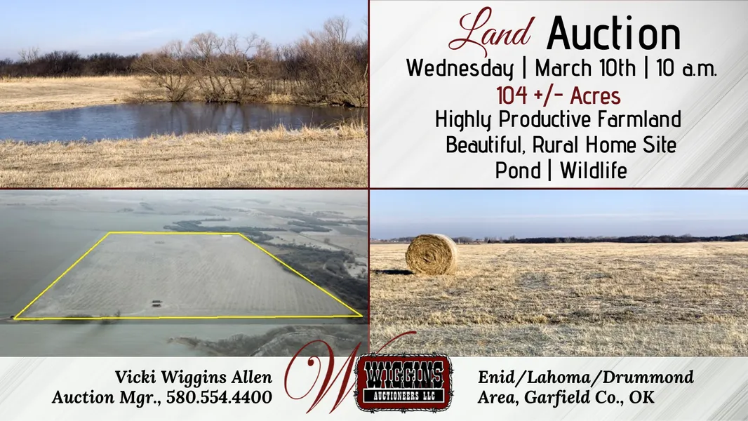 104 +/- Acres | Highly Productive Farmland | Beautiful, Rural Home Site | Pond | Wildlife Enid/Lahoma/Drummond Area, Garfield Co., OK