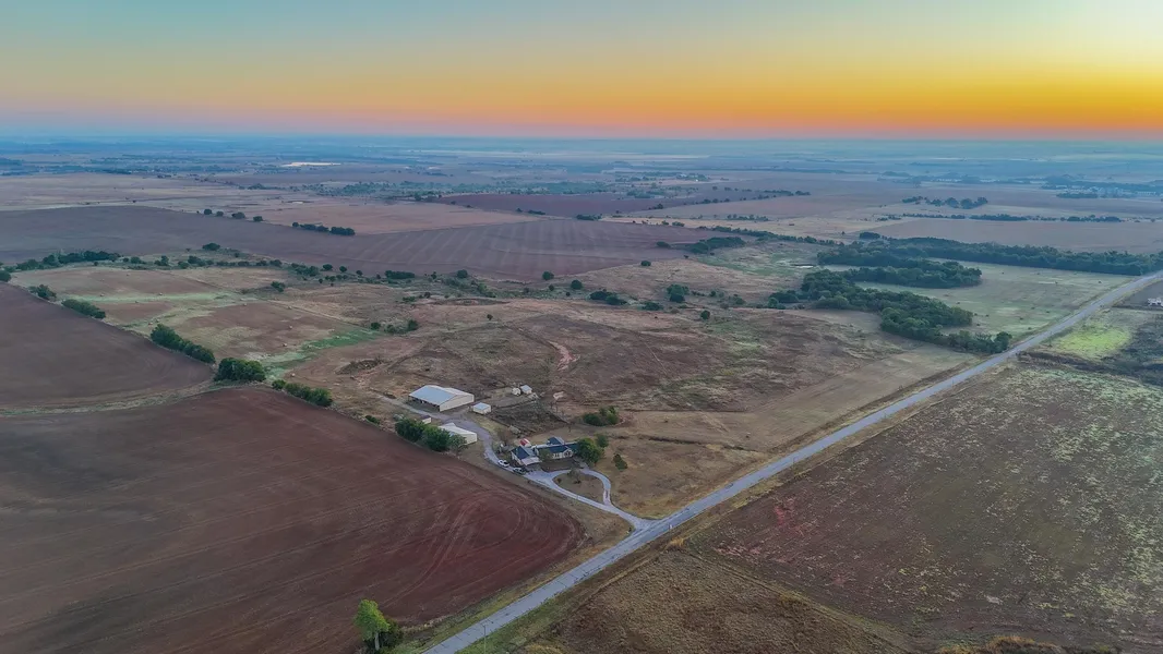 Known for being one of the top wheat producing counties in the state, this area is also highly sought after for cattle ground and excellent hunting opportunities. No matter what your goals are, this acreage is sure to check a lot of those boxes. Located on a paved road and just minutes from town, you could easily make this acreage your new primary residence, or simply add it on to your existing farm portfolio and expand your reach. The home on the property was originally built in 1996 and offers plenty of space as a main home, foremans home or could be an excellent spot to build your new dream home in the country with utilities already in place. The large buildings provide abundant space for storing equipment both large and small, and could also be transitioned into stables for the equestrian buyers. Several large hay meadows are scattered across the acreage and the recreational opportunities, especially on the east side will provide plenty of opportunity whether you are looking for deer, waterfowl or even pheasant. Located just up the road from Garber, easy access to Enid and Highway 412 makes this highly appealing acreage no matter what your intended use.