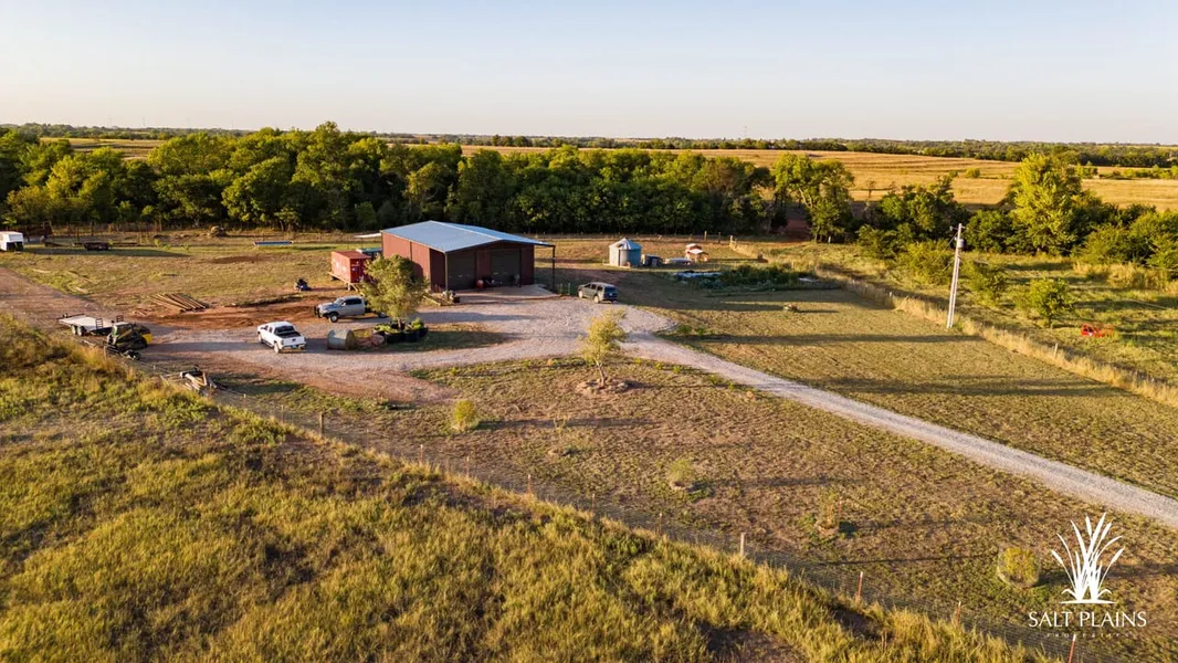 At the heart of the property stands a spacious 2,000 sq ft barndominium, featuring 2 bedrooms, 1 bathroom, and a full kitchen. This comfortable living space is equipped with luxurious amenities, including a tankless water heater and thermogenic floors for year-round comfort. For added security and peace of mind, the barndominium includes a built-in safe room. The generous size of the structure offers ample room for both living and potential office or storage space, making it ideal for on-site ranch management.