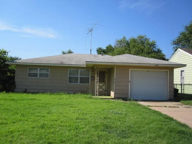 3 bedrooms * full bath * large kitchen * attached garage * central heat & air * storm shelter * chain link fence * Terms: 10% down w/bal. due on del. of merchantable title. Ann. day of auction take precedence.