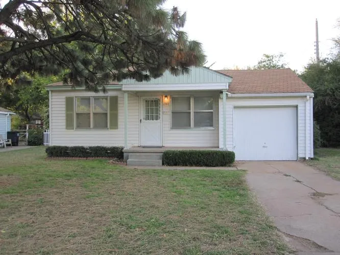 This is a very well cared for home situated in a nice residential area. Some of its features include: lg living/dining area w/new carpet and newly refinished hardwood * 2 bdrms w/new carpet * full bath w/nice tile flooring, shower enclosure, and new sink vanity * kitchen w/nice cabinets, countertops, s.s. sink, and tile flooring * freshly painted throughout * floor furnace * window unit air * storm doors and windows * vinyl siding * attached garage * paved drive * big fenced yard * very tastefully decorated and ready to move in * excellent home or investment opportunity * close to schools, parks, Vance AFB, and shopping Terms: 10% down w/bal. due on del. of merchantable title. Announ...
