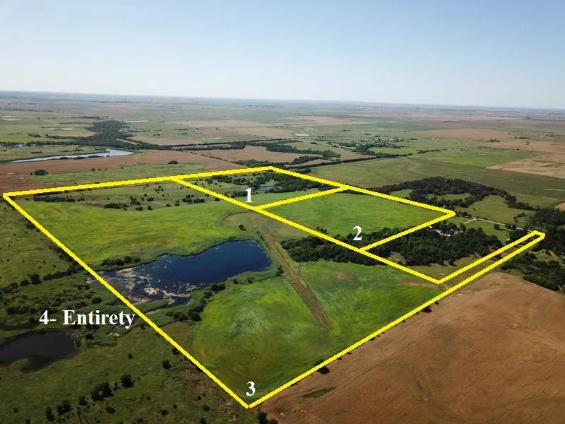 Legal Description for Entirety (Tract #4): NW/4 plus an approx. 12.6 acre tract in the NE/4, less & except an approx. 10-acre tract; all in Sec. 9, Twp. 23N, R5 W., Garfield Co., OK, containing 162.6 acres more or less. Tract #1: 34.5 +/- acres located in the NW/4 NW/4; Tract #2: 34 +/- acres located in the NW/4 & a portion thereof in the NE/4; & Tract #3: 92 +/- acres located mostly in the S/2 Order of Auction: Tracts will be offered individually & in combinations to suit buyers. Note: In the event tract are sold individually to separate buyers, buyers will be solely responsible for the cost of the survey.