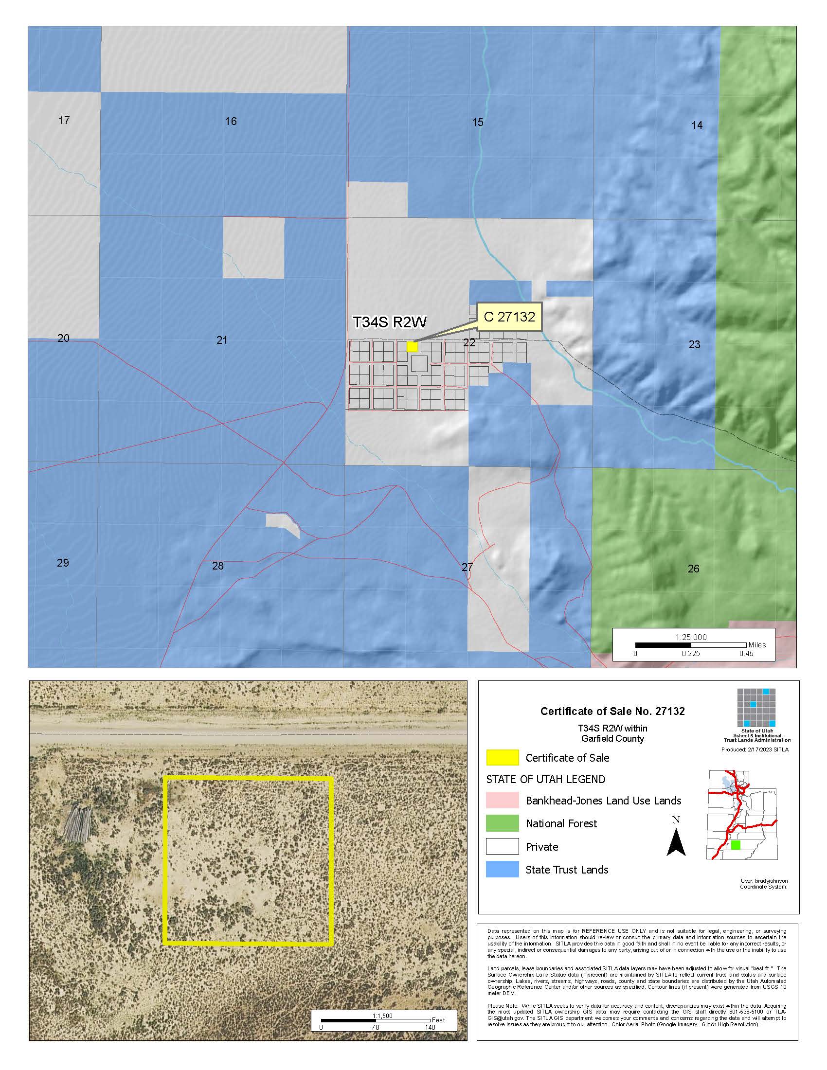 Utah State School and Institutional Trust Lands Administration (SITLA) is selling a lot in the historic Widtsoe townsite area at a public auction to be held online June 8-13, 2023. This 1.00-acre lot is located in Garfield County, in the John's Valley area, along State Highway 22. The lots are 13 miles north of Bryce Canyon and are also close to many other recreational opportunities. SITLA has sold several lots in this area and this is the last available lot to be sold. The minimum acceptable price is $20,000.00. Financing is available. (Photos and video are of both the lot and the surrounding area - C-27132.)