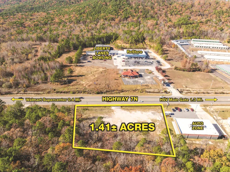 REAL ESTATE DESCRIPTION: This Prime 1.41+/- Acre Tract with 480+/- Ft. of Frontage on HWY 7 & an Average Daily Traffic Count of 6,200+/- Vehicles Per Day, in an Excellent Location between the Main Gate of the Hot Springs Village & Walmart is SELLING REGARDLESS OF PRICE TO THE HIGHEST BIDDER ON AUCTION DAY! ~ Lot is Cleared, Level & Ready for Development! ~ New Survey Provided to Buyer ~ All City Utilities ~ Selling as One Parcel to the Highest Bidder on Auction Day! ~ Drive by & Inspect this Tract lying just South of the Auto Zone at Any Time.