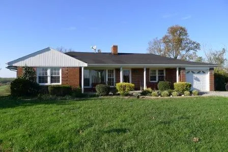 Mountainous views from the covered front porch or private back deck of this lovely 3bd/2ba brick ranch on part finished walkout Bsmt. Feel at home as you enter the living rm w/ fireplace that opens up to a Lg. dining area. Spacious kitchen boasts stainless app, tile backsplash, & bar. Hardwood & Tile. Bsmt living area w/ woodstove. 1.27ac yard w/ mature trees & garden. 20x24 Barn w/ electric.