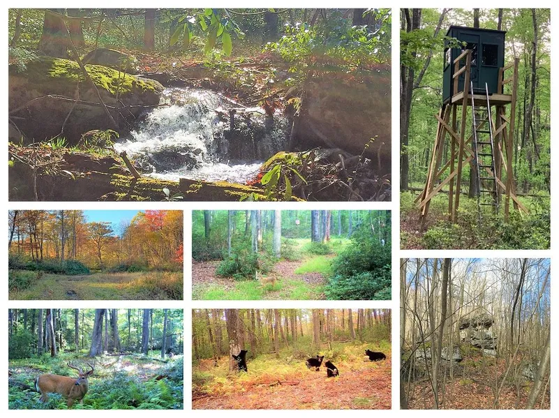 SELLS TO HIGHEST BIDDER AT $50,000 OR ABOVE! Incredible 109+- Unrestricted, surveyed wooded acres for all your recreational & hunting needs! Rolling terrain, groomed trails, open hardwoods, thick laurel, winding stream, & abundant wildlife! Bear, Deer, Turkey, Fox & more! Turnkey property w/QDMA management in place w/food plots & fruit trees; All hunting stands/blinds convey; Also conveying in sale-Lot 40-0.37+-Acres, Alpine Lake Resort; 109+-acre parcel does not have road frontage. Contact office for more information on right of way.