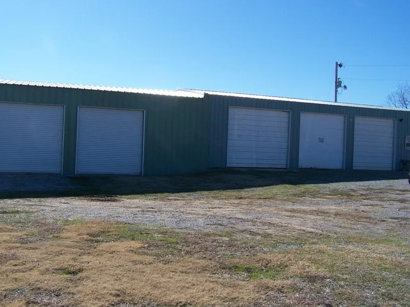 Joining shops-Two 50x30' totaling 3000 sq. ft. 2 offices, 1 bath, 250 gallon propane tank for water heater which is in loft, 6 overhead doors, Has security system but must have land line to work.