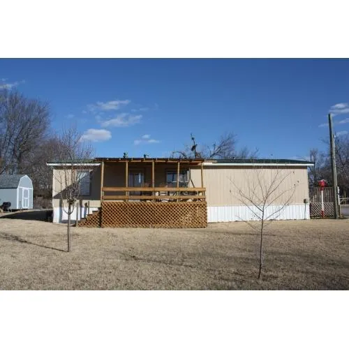 Nice remodeled 3 bedroom, 1 1/2 bath mobile home with large fenced yard. Nice covered front and back decks. Storage building and 10 x 20 henhouse.